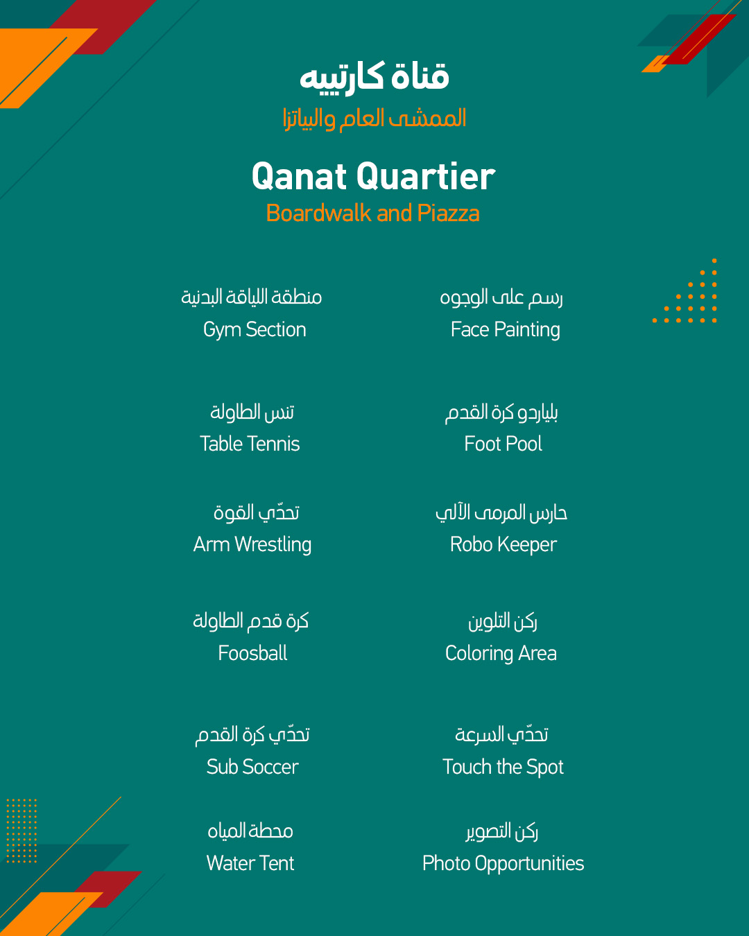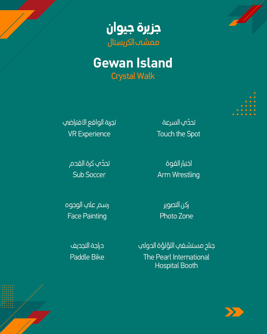 Locations: Porto Arabia, Qanat Quartier, and Gewan Island